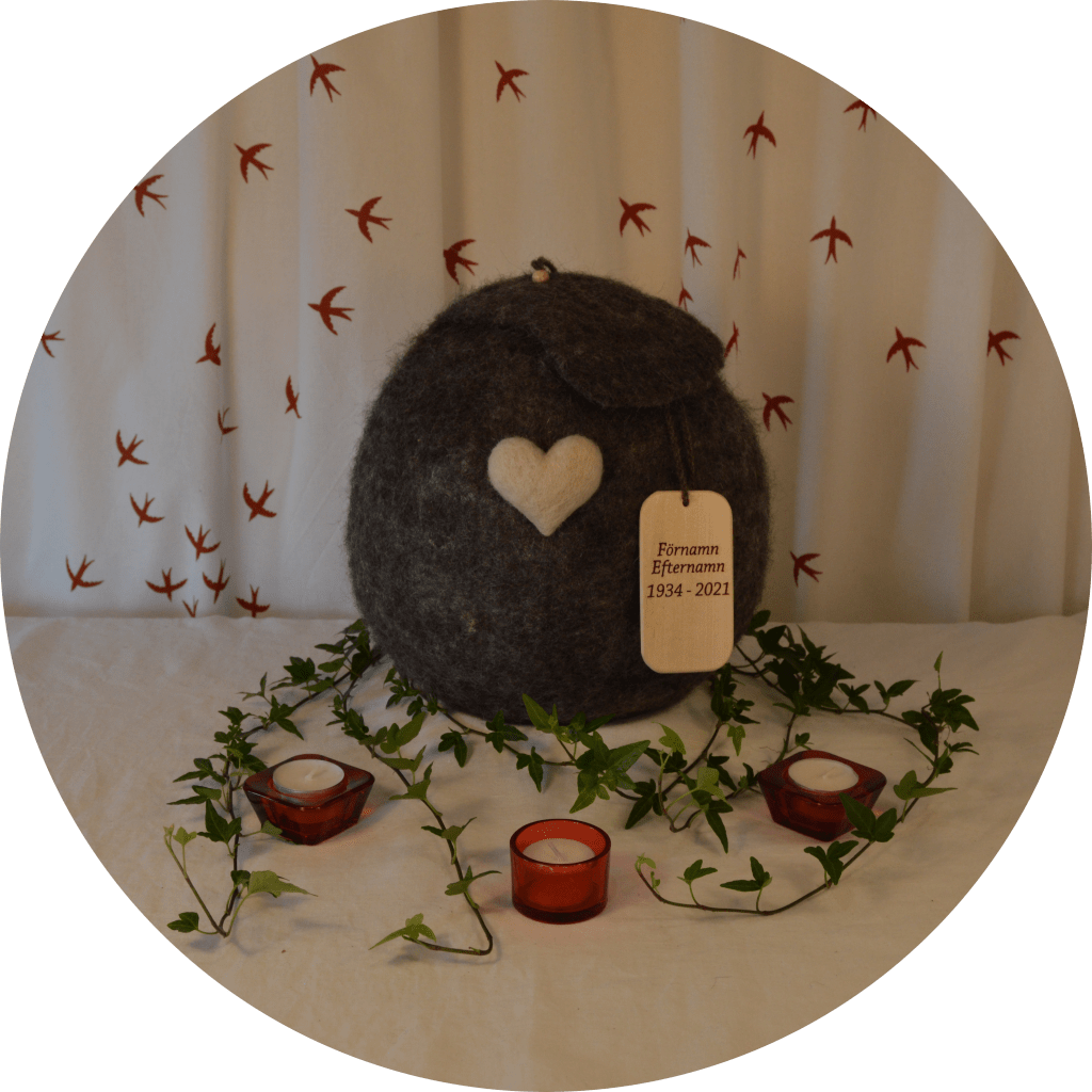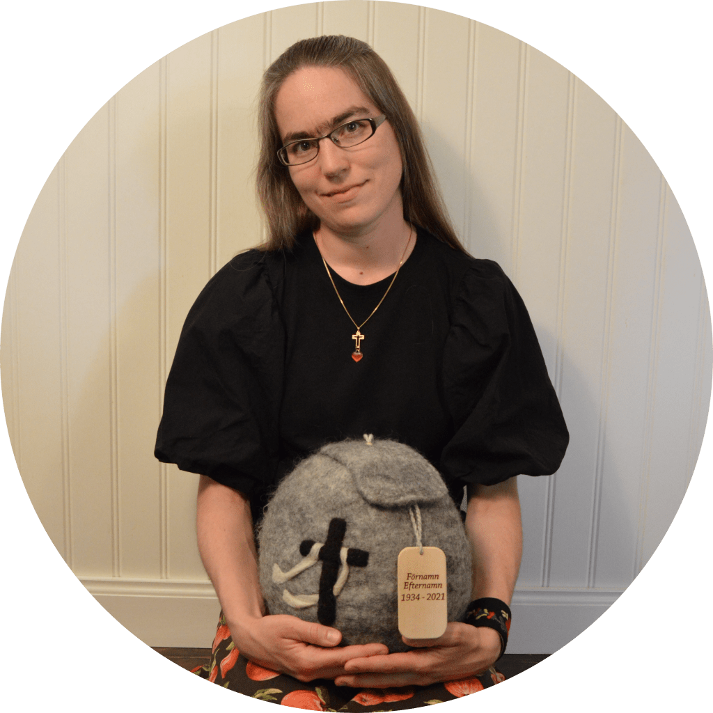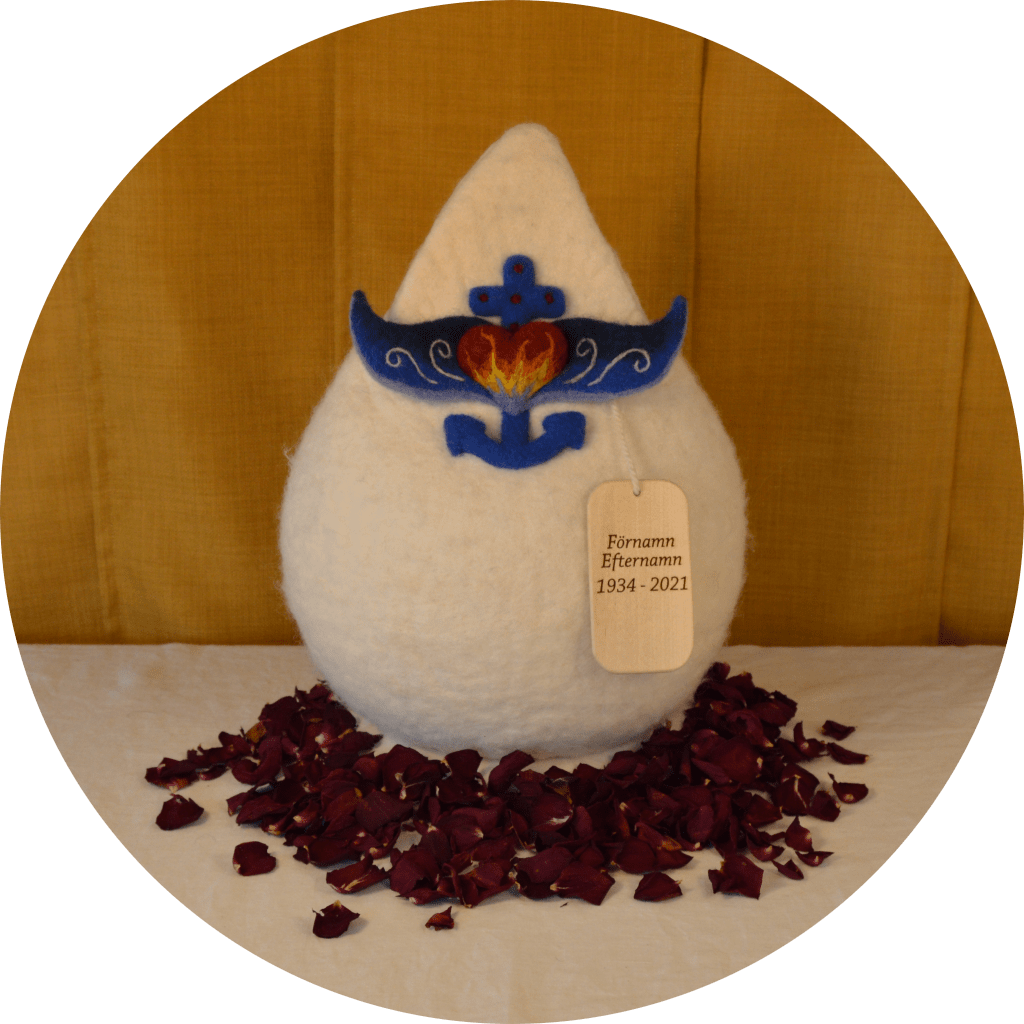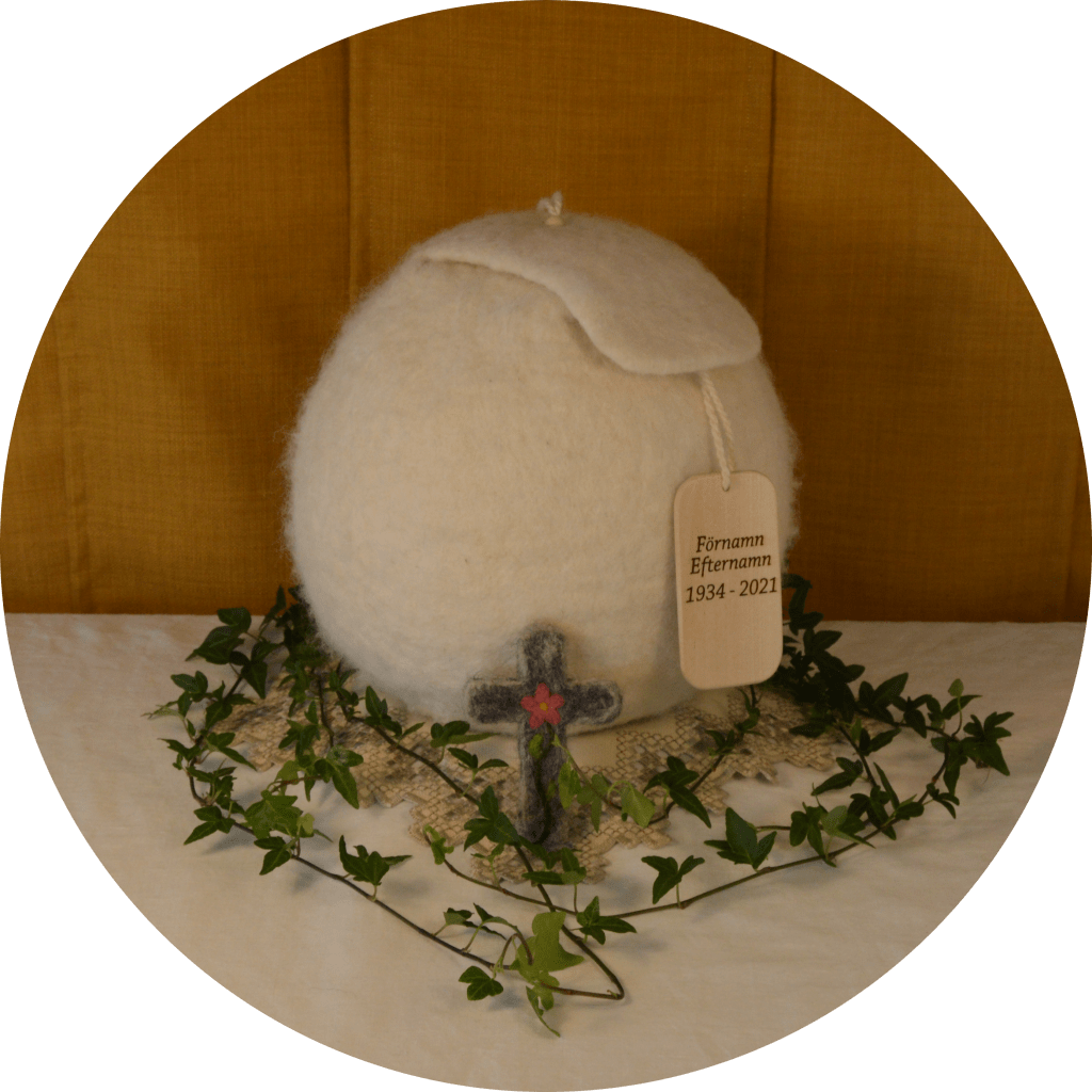 Skräddare Sofia tillverkar tovade begravningsurnor i svensk fårull och varje ull-urna är ett unikt konsthantverk, som tillverkas hantverksmässigt med omsorg i Skattungbyn, Dalarna.